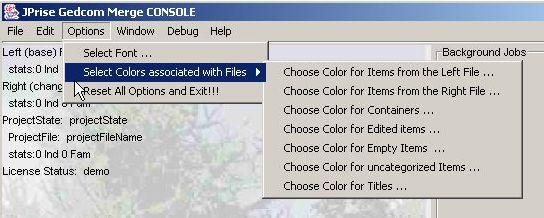 This resets all color settings, and font settings back to their defaults. Also JPriseMerge will be placed back in tutorial mode and files setting will be reset to the tutorial data files. JPriseMerge will also be placed back in beginner mode so that help files are automatically displayed upon activation of JPriseMerge windows.