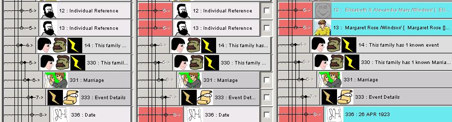 JPriseMerge will do as much back linking as possible also, automatically. To understand this concept, lets use an example. Lets say we are working with an individual - John. John has a spouse named Mary. Suppose we are adding/merging in a new child - Susie to the family record formed for John and Mary. Not only will JPriseMerge install Susie as a child of both John and Mary, but it will automatically set up the new individual record element for Susie so that the references to her parents, John and Mary are filled in. Likewise if we were adding in a new parent individual then JPriseMerge will handle the back linking so that the new parent also knows who their child is. This is the only form of automatic reference resolving that JPriseMerge can do, and it will save you a lot of time an confusion.